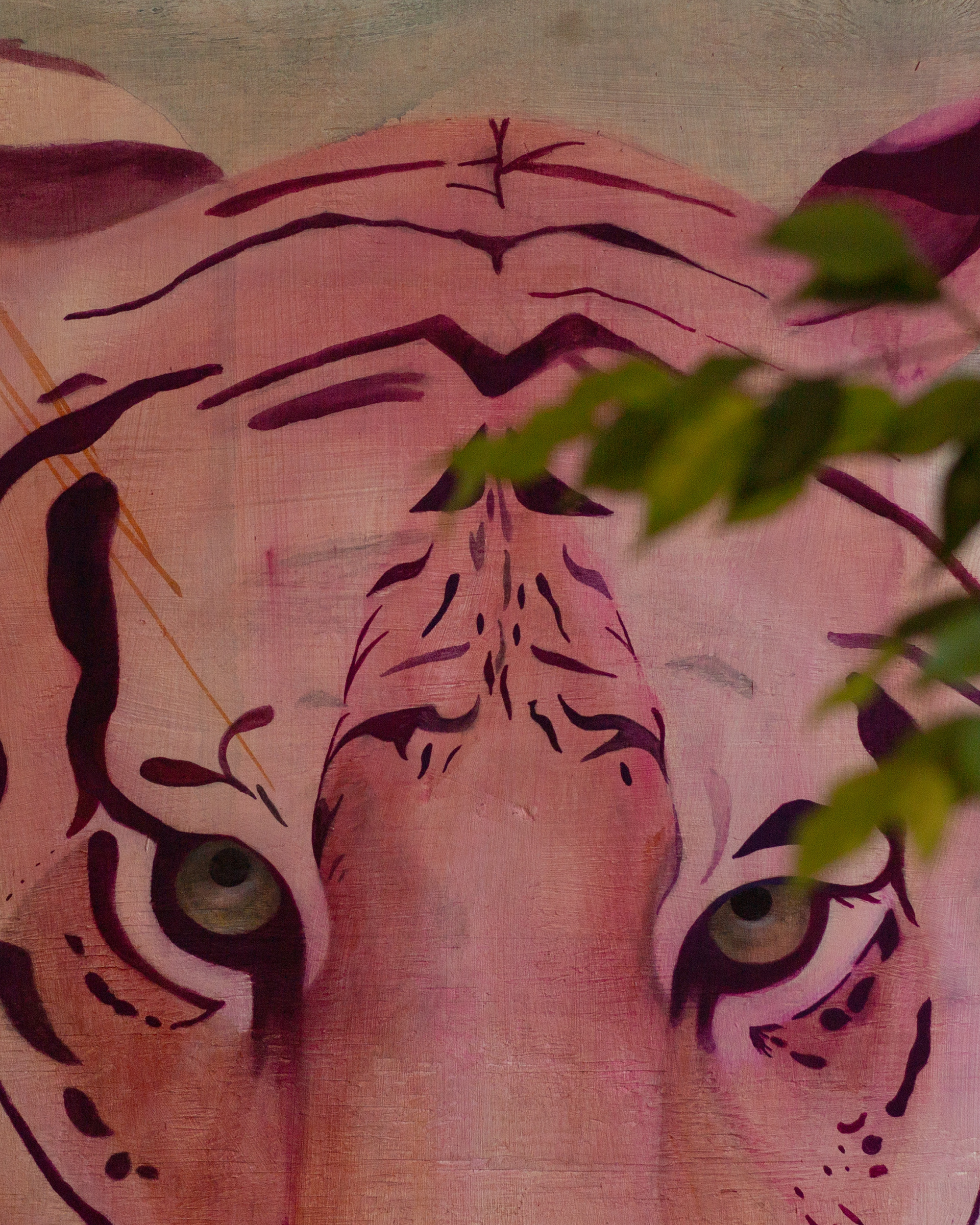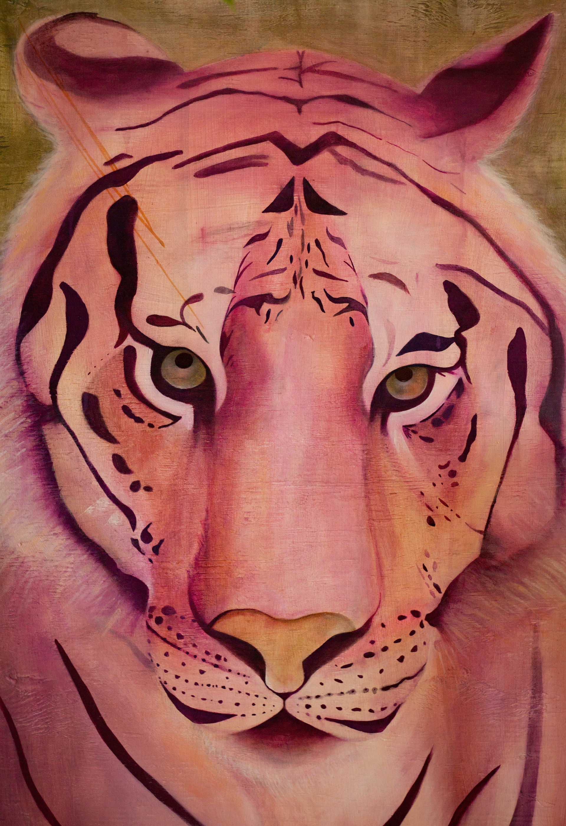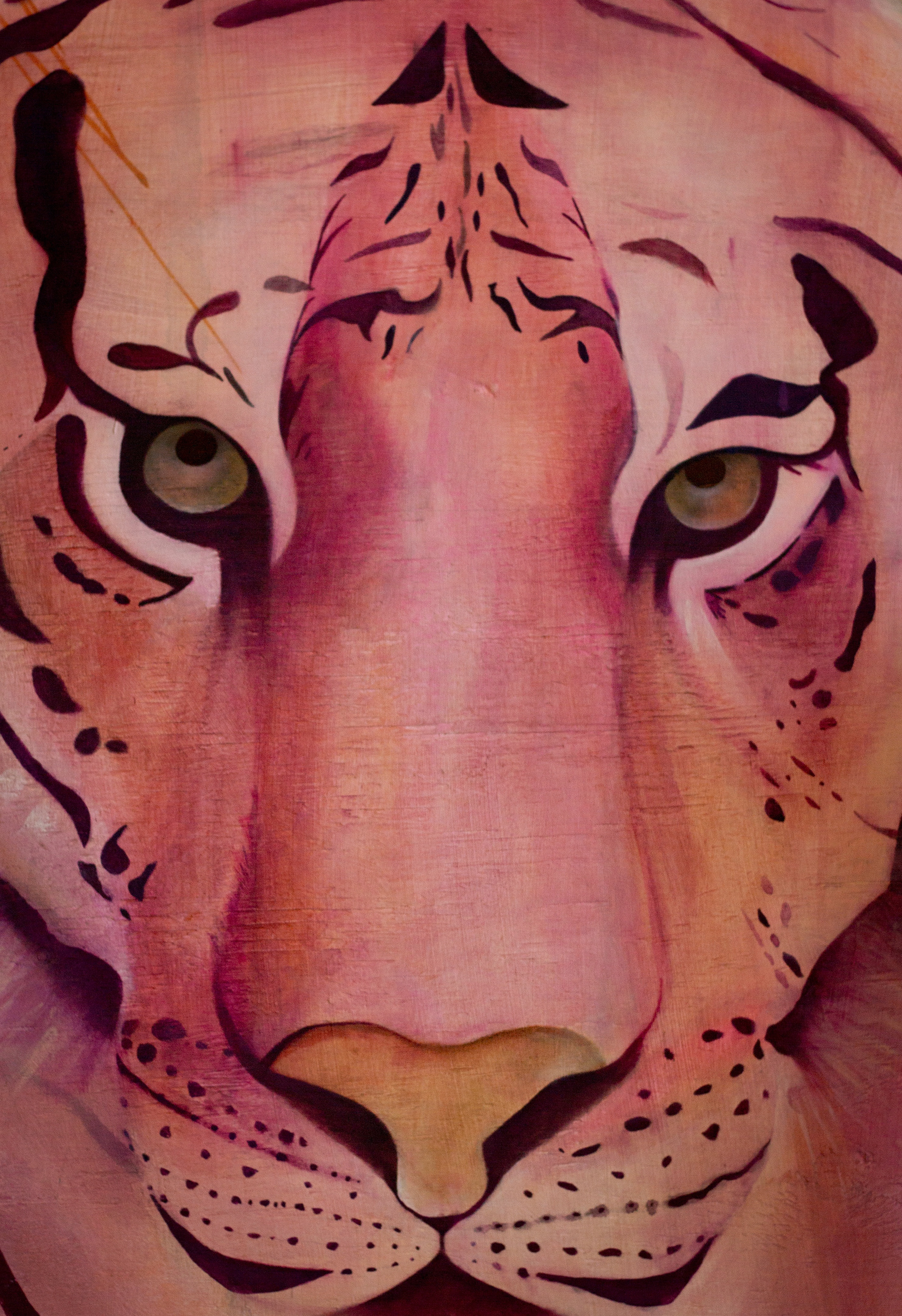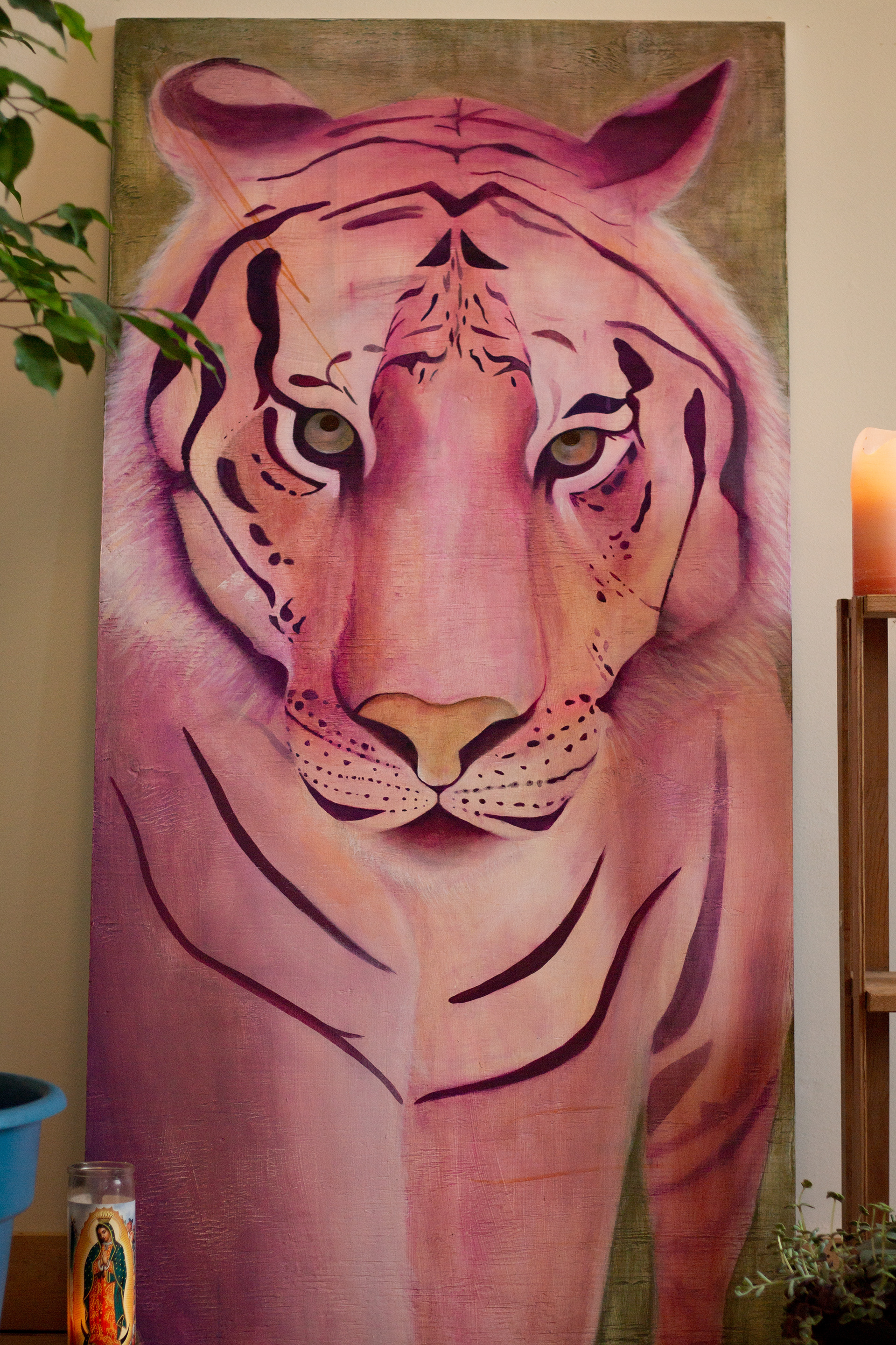 This painting is like a totemic reminder of that. 4’ x 2’ gouache / acrylic /marker / colored pencil on wood. 🐯
