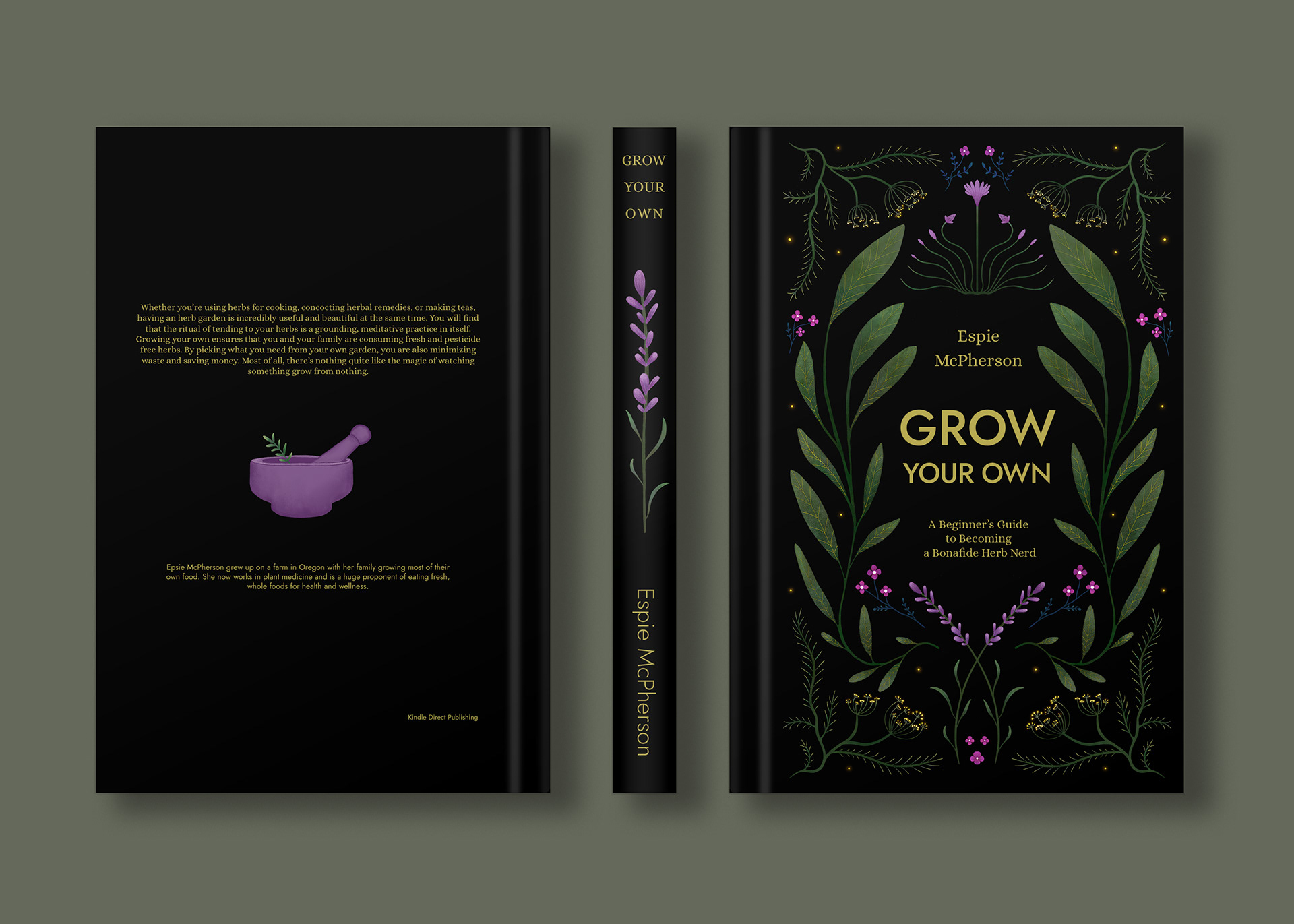 Created for a 99Designs contest client who is publishing her first book on herb gardening. See this cover featured in 99Designs' blog post: